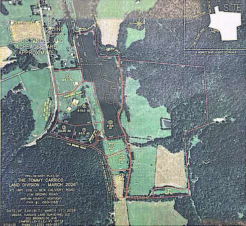 Here is an awesome piece of ground located in the Calvary area right along Highway 208 close to the Marion/Taylor County line. This fantastic spread of land totals 47.25 acres (+/-), but has been subdivided to give you the ability to pick and choose the tract(s) you want and tailor it to your needs if you're not wanting to buy it as a whole. There are 8 tracts that have been strategically subdivided to maximize each lot's use and starting with Tract 1... Tract 1 ($74,900) is a 4.1-acre (+/-) lot with road frontage along Hwy 208 and having a 32' X 48' metal barn with a lean-to plus is a prime candidate for a building lot... Tract 2 ($159,900) has even more road frontage and offers 10 acres (+/-) ideal for supplementing farm operations as it features a 40' X 64' stack pad, a 36' X 64' feeder pad, a 36' X 48' tobacco barn with an enclosed lean-to, plus a pond! The added acreage leaves room for the possibility of building and having a little homestead... not to mention it also being a favorable companion tract to tract 10... Tract 3 ($49,900), Tract 4 ($49,900), Tract 11 ($49,900), Tract 12 ($49,900), and Tract 13 ($34,900) are all generously sized building lots where you can have your choice of facing along Hwy 208 with Tract 3 are being nestled in a more private setting along Jim Brown Road with Tracts 4,11,12, & 13... Tract 10 is a magnificent 18.8-acre (+/-) spread of land that is suitable for crops, livestock, and other recreation. Just a really good piece of ground that again... would pair nicely with Tract 2. Now call TREY ABELL to get all of your plans... on tract today!