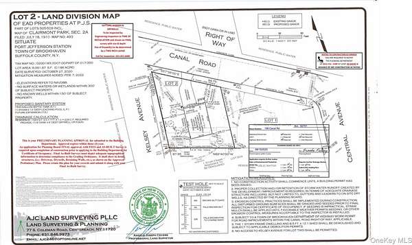 Incredible opportunity calling all builders, developers, and end users - this is a 100% shovel-ready, single and separate building lot connected to 99 Central Ave, Port Jefferson Station, with your future curb cut on Canal Road and a new address to be assigned for a 2100 square-foot house not including garage. Building permits are expected within weeks, allowing you to avoid the hassle of navigating Brookhaven delays and lengthy approval timelines. The property includes stamped plans and full Board of Health approval, eliminating the red tape and positioning you to move directly into construction. Situated on approximately 8,000 square feet in the Comsewogue School District, this lot is approved for a three-bedroom home with an additional first-floor office or optional bedroom, two full baths, one half bath, and a full basement with outside entrance. The only responsibility for the builder will be removal of the existing cottage, creating a streamlined, high-upside project where you can break ground quickly and capitalize on a rare ready-to-build opportunity. House is turned front door faces Kelsey