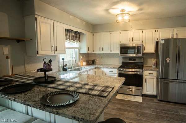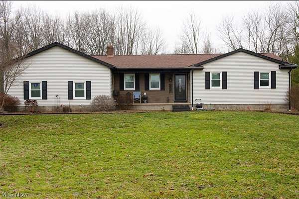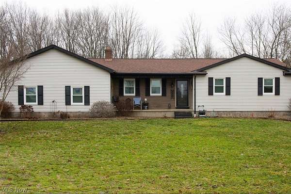 Situated on almost 4 ACRES in CANFIELD, This Lovely 3 Bedroom 2 Bath RANCH home has lots of privacy. Enjoy easy 1 floor living with picturesque views of nature surrounding you. Large Living room with Luxury vinyl flooring. Over-sized Kitchen with 3-seat island, Stainless Steel Appliances, and plenty of room for a table and chairs. Bonus Room is actually a beautiful enclosed all-season room that is currently used as formal dining room and the possibilities are endless. Primary Suite does come complete with its own full bathroom. Another full bath and 2 perfectly sized bedrooms complete the 1st floor. Basement is partially finished and has Laundry area. 2 car attached garage. Out Building. Front porch and back patio. New vinyl insulated windows. New Gas Boiler. Gas Rights transfer and free gas. New whole house fan. New Doors. New Whole House Water Filtration System.
