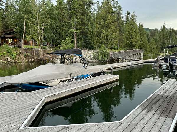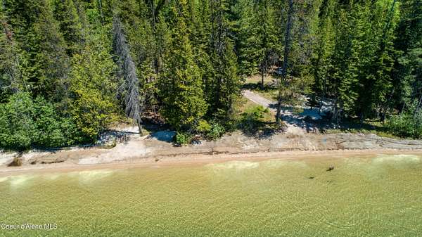 From Highway 57, turn east onto Dickensheet Rd toward Coolin. Continue onto Cavanaugh Bay Rd, then turn left on Eastshore Rd, follow for 20 miles, and turn left onto E Canoe Point Rd to the property.