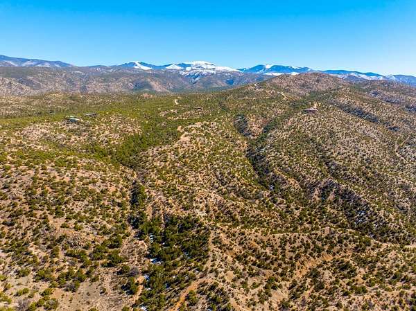 New lower price! The perfect spot for a private sanctuary, these three elevated lots totaling 53 acre are hidden in a canyon above Nambe, on a west facing slope of the Sangre de Cristo Mountains. In an enclave of 18 privately held lots surrounded on all sides by Forest Service land, these lots are bounded by Forest Service land on two sides. Experience amazing sunsets, incredible western views of the Jemez Mountains and the Rio Grande Valley, and intimate glimpses of the high peaks of the Sangres. Lots have two leveled building sites, electrical transformers, two shared wells, and established driveways/roads to building sites. Behind two gates for maximum privacy. Well maintained county roads bring you to the first gate, property is 29 miles from the plaza. Make an appointment to see today.