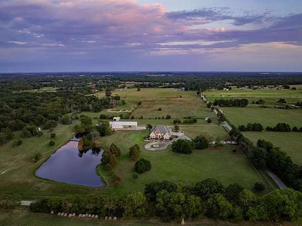 Do you enjoy, beautiful views, peace and quiet, swimming, fishing, riding horses, cooking, relaxing, or entertaining. Well that is just a short list of what this property can offer. 6400 SF luxury home built on 18 amazing acres with 5700 SF shop, multiple barns, 3-car garage, inground pool and spa, 2-acre private lake stocked with fish, shooting range, horse stalls and so much more! The custom 5-bedroom, 5.5-bath home features a beautiful sitting room upon entry, a chef-inspired kitchen that includes premium appliances, an oversized island, breakfast bar, walk-in pantry, a separate dining area, and two spacious living areas. A private elevator, and basement storm shelter are just two of the cool unique things you will love about this property. Propert is fully fenced and cross fenced. You have to come see this to believe it. Do not let this once in a lifetime opportunity pass you by. Schedule a tour today!