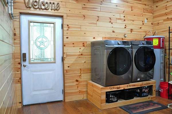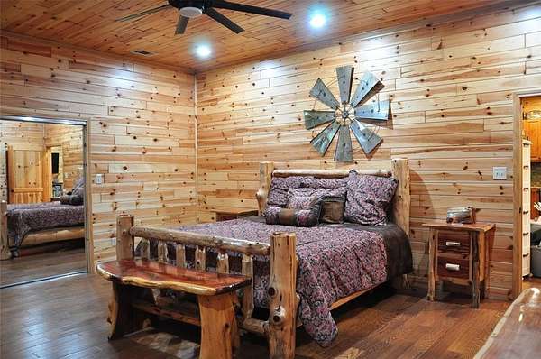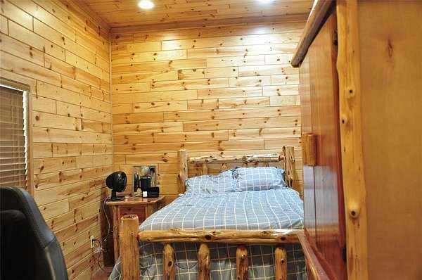 Escape to your own private retreat on 3.34 acres with this beautifully crafted 3 bedroom, 2 bath home designed for comfort, energy efficiency, and outdoor enjoyment. Surrounded by deer, quail, doves, and natural beauty, this property offers excellent recreational and hunting opportunities right out your back door. The home is fully insulated with foam insulation and equipped with solar panels for low energy costs year-round. Inside, enjoy the rustic elegance of knotty pine cabinets and prefinished knotty pine interior walls imported from Michigan, adding warmth and charm throughout. The kitchen is a dream for cooking enthusiasts, featuring a unique island made from barrels with granite countertops, a gas stove, and plenty of space for prepping and entertaining. The open living area includes a cozy gas-burning fireplace and a spacious 10x50 screened-in back porch that's perfect for a game room, entertaining, or peaceful relaxation. Included are custom end tables handcrafted from trees harvested right off the property, adding personal character and storybook charm. The home includes a 2-stage 16 SEER HVAC system for year-round comfort and is wired for a generator that powers lights and the fireplace for added peace of mind. Storage and parking are abundant with a 25x30 metal garage with roll-up door, a 25x25 carport, a 14x30 boat or RV carport, and a dedicated 40x16 covered RV parking area. Whether you're looking for a quiet homestead, a weekend getaway, or a property that offers space to play and unwind, this home feels like a vacation escape every day. Experience the perfect balance of rustic charm, modern efficiency, and wide-open space in this one-of-a-kind property.