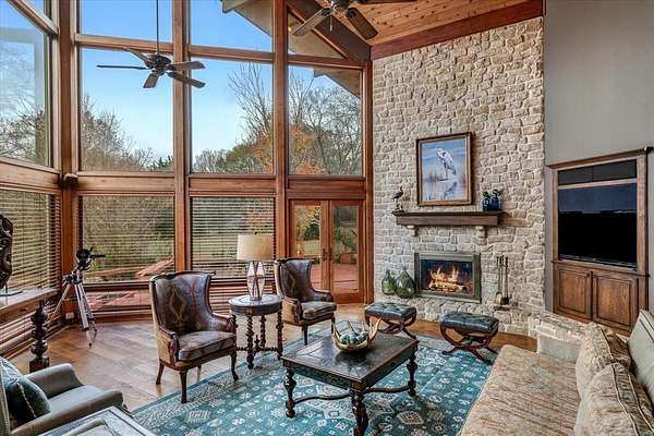 Experience luxury ranch living on 36+- ac with breathtaking views and park-like land, beautiful main home overlooking the infinity pool, spa and pond, outdoor kitchen on oversized deck, workshop with apartment, barn, 2 story fishing dock with kitchenette & tanning deck, gated entry, and iron fencing. Welcome to the stunning 4-5.1-3 estate, designed for comfort and elegance. Home offers unparalleled features and amenities for those seeking the ultimate retreat. Expansive living area with soaring ceilings and floor-to-ceiling windows flooding the space with natural light. The gourmet kitchen is a chef's dream, boasting double ovens, 2 spacious pantries, subzero refrigerator, 2 dishwashers, and plenty of prep and storage space. High end architectural design in every room with incredible custom cedar beams, wood accents and knotty pine doors. Also features geothermal HVAC, ground mounted 30kw solar panel system, and two gas generators. Relax and entertain outdoors with a sparkling pool, a sprawling deck, a covered patio, and a built-in fire pit--ideal for cozy evenings under the stars. The property is secured with an electric gate and includes a 70x40 workshop with 741 SF apartment, and 40x60 lean to perfect for any of your animals or equipment. This estate truly has it all--luxury, privacy, and breathtaking surroundings! All located in the highly sought after Canton ISD, easy and convenient frontage on both FM 3227 and Hwy 198, just an hour to Dallas, 45 minutes to Tyler, and less than 10 minutes to First Monday Trade Days, restaurants, grocery and shopping.