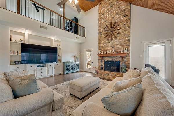 These kind of homes don't come on available very often. Now on the market is this mini ranch on 2.57 acres with everything you need to live in one of the prettiest areas of Canton offering seclusion and privacy, yet being only minutes from the convenience of town. Enter through the custom double solar powered gate. Fresh installation of a new chip-seal driveway. This little piece of heaven offers 3 bedrooms, 2 full baths and 2 half baths with 3,372 sqft, and has been meticulously maintained and UPDATATED to the max. Entering this home, you will be greeted by a recently remodeled grand staircase and railings, very large living room with build in cabinets, floor to ceiling brick wood burning fireplace, 3 doors that lead to the wrap around covered porch with unbelievable views of the country. Recently remodeled and expanded huge kitchen with dining, custom and expansive cabinetry, large pantry, quartz countertops, beautiful backsplash, stainless steel appliances, one of the largest islands you'll ever see, perfect for entertaining or for large family gatherings. Oversized primary bedroom and updated en-suite bath with huge double shower, double sinks, separate Hollywood tub, his & hers closets. Upstairs large secondary bedroom with its own updated bathroom, custom shower and walk-in closet. Second floor loft area currently being used as an office, great for a game room or 2nd living area. Outdoor front area crossed fenced for your animals with 2 stall loafing shed, 10x16 tack room or storage, and a pond with fountain. Inside pipe fence is all covered by sprinkler system for beautiful summer grass. Gorgeous oasis deep in-ground pool, pool house with bathroom & changing room. 25x40 shop with 50amp covered RV parking or equipment. 25x25 custom detached carport. Driveway leads to rear parking & garage with separate driveway leading to the shop. 26kw whole home generator and tornado shelter in garage stays! Recent 2023 well installed providing free water! Property is fenced