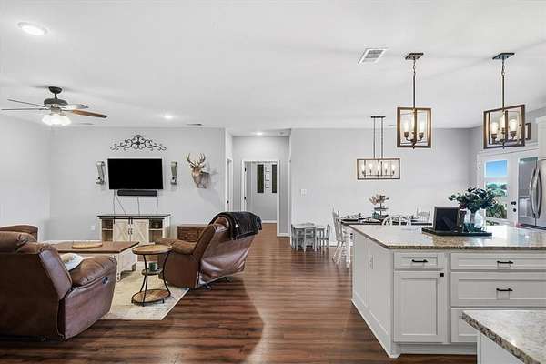 The first thing most people say when they walk in is the same thing… “wow, this is bigger than I expected.” The front door opens into one large living area where the kitchen, dining, and living room all come together around a big island that naturally becomes the center of the home. It’s the kind of layout where someone can be cooking, kids can be at the table, and everyone still feels connected. The primary suite offers a quiet place to unwind, and the bathroom stands out with a huge walk-in shower and an oversized closet. The guest bathroom is also larger than most with double sinks, which makes busy mornings a lot easier. The other bedrooms are adorable and feel bright and homey. Step out back and you’ll find a wide covered patio that’s great for grilling, relaxing in the evenings, or sitting outside and enjoying the view of your property. The property also features a great workshop with covered parking, offering a dedicated place for vehicles, projects, tools, or hobbies. All of this sits on over 2 acres in Canton ISD, so you still get room to spread out while being a short drive from town. A home like this gives you the space to live the way you want to. You bring the offer, we'll bring the keys!