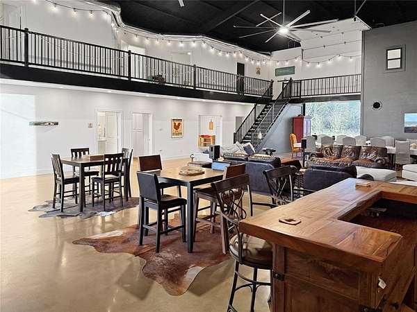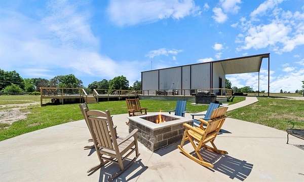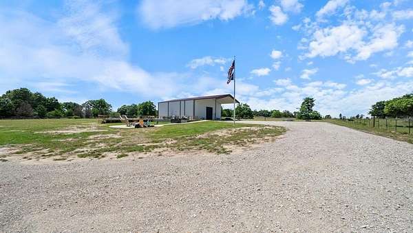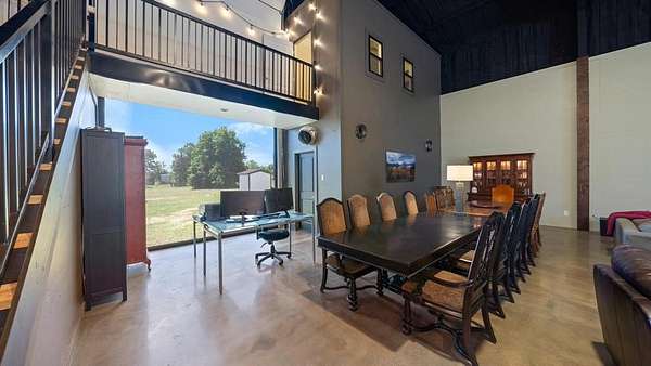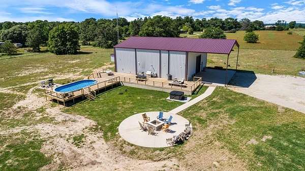 IMAGINE THE POSSIBLITIES! This incredible 9+ acre unrestricted country estate offers endless potential as a private residence, wedding venue, corporate retreat, church retreat, or multi-use investment property. With no deed restrictions, you have the freedom to live, host, expand, or build exactly as you envision. The spacious barndominium features 6 bedrooms and 3 full baths, providing generous accommodations for large families, guests, or event hosting. The open-concept main level showcases a grand Great Room and Dining Area with soaring ceilings, creating an impressive setting for gatherings and celebrations. The bright, well-appointed kitchen is equipped with SS appliances and abundant workspace, ideal for everyday living or catering larger events. A private downstairs bedroom offers the perfect guest suite and the 2 downstairs oversized baths and laundry and storage rooms add everyday functionality. Upstairs, you’ll find additional spacious bedrooms, and a full bath for additional guest accommodations. A custom metal staircase adds architectural character and modern appeal to the home’s design. Outdoors, the property truly shines as a private country oasis. An expansive deck overlooks the acreage, while the above-ground pool and hot tub provide the perfect place to relax and unwind. A peaceful pond, open pasture ready for livestock or recreation, private shooting range, and inviting fire pit area create endless opportunities for entertainment and enjoyment. The 2 extra metal buildings (1200 and 1120 sqft) offer space for animals, storage, or workspace, and additional garages, large enough to accommodate RV parking. The property has an RV hook up, a private well and public water available at the street. Whether you’re seeking a peaceful homestead, an event venue, a retreat space, or a rural investment, this versatile property delivers space, freedom, and unmatched potential. Schedule your private showing today.