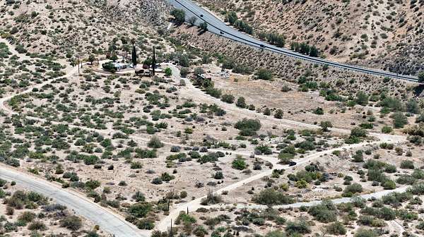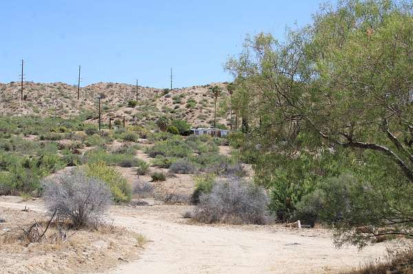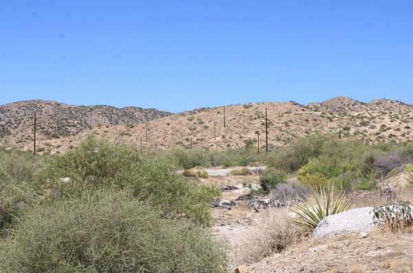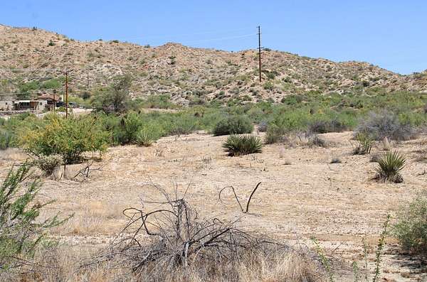 The southern section of the land includes a large wash that's beautiful and wild, but not the place to build. Stick to the northern half if you're thinking long-term structures. You'll also find some old debris in the southern area, the remains of a fire from a few years back. Cleaning it up will take effort, but the rest of the land is relatively clear.