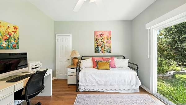 *Get ready to fall in LOVE with this stunning Hill Country retreat on 5+ acres in Comal County!* Discover the tranquility of Hill Country living in this beautifully designed 3 bedroom, 2 bathroom home with a bonus room, situated on 5.05 peaceful acres in the scenic Eden Ranch community. Located just off Purgatory Road near Canyon Lake and minutes from New Braunfels, this home offers privacy, natural beauty, and elegant comfort. Tucked away on a quiet, low traffic street ideal for morning jogs or evening walks, the property welcomes you with a curved driveway and an additional parking pad for guests. The home features a metal roof and a classic stucco exterior, blending with the surrounding landscape. Step inside to an open concept layout filled with natural light and serene wooded views. The interior is thoughtfully finished with neutral tones, custom details, and an airy design that enhances the sense of space. The island kitchen is the heart of the home, complete with granite countertops, crisp white cabinetry, and plenty of room for cooking and gathering. The spacious primary suite offers picturesque views and includes a large walk-in closet designed with California Closet systems, and a private bonus room/office/retreat featuring electric powered custom shades perfect for a home office, nursery, or reading nook. The luxurious ensuite bath boasts a deep stand alone soaking tub and a separate walk-in shower. Secondary bedrooms are generously sized and designed for comfort. Outdoors, enjoy the peaceful wooded surroundings from the gorgeous stone patio ideal for entertaining or unwinding in nature. With reasonable restrictions, no monthly HOA fees, and plenty of usable land, the possibilities here are endless. Don't miss this rare opportunity to own a slice of Hill Country paradise!