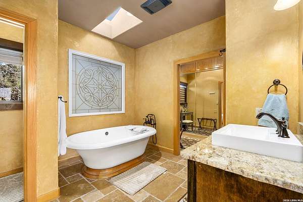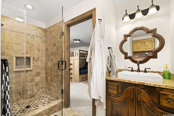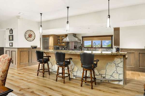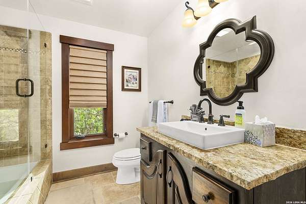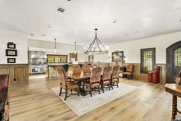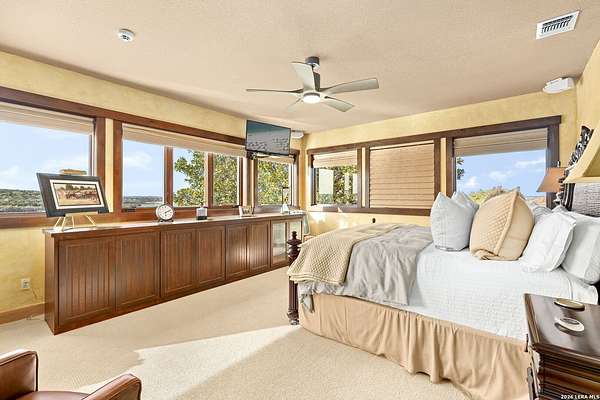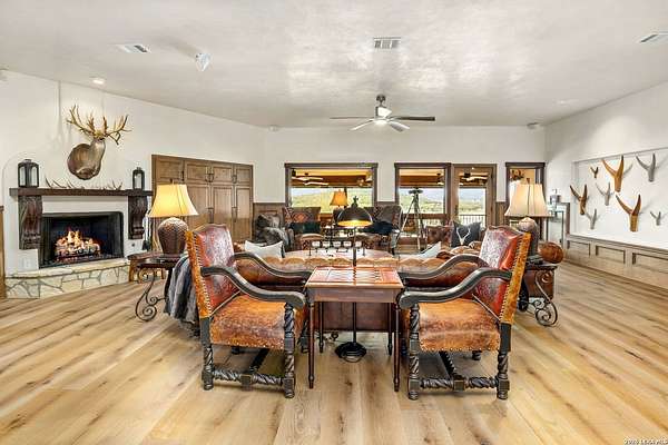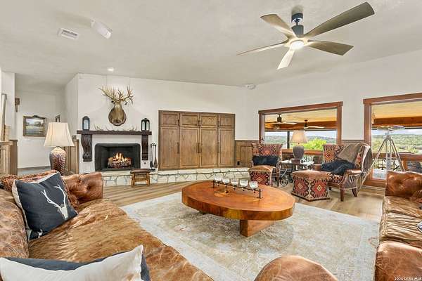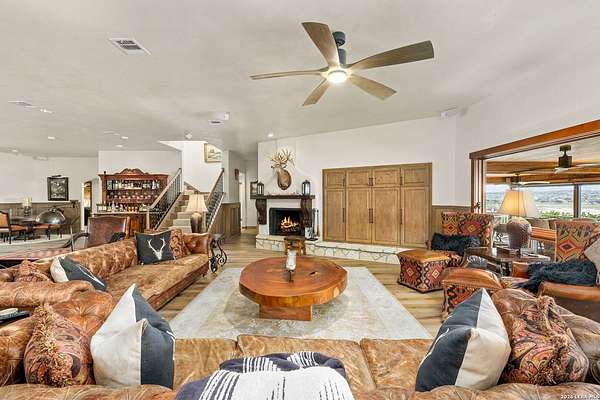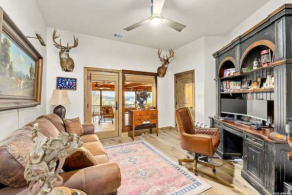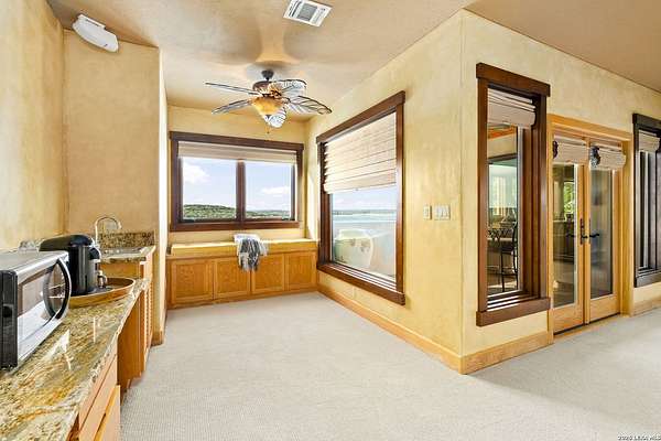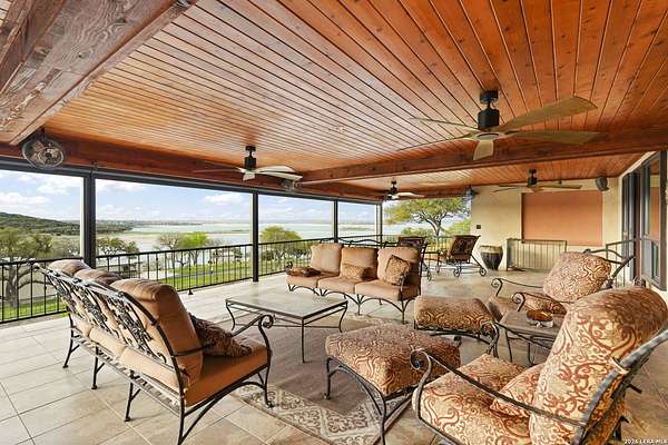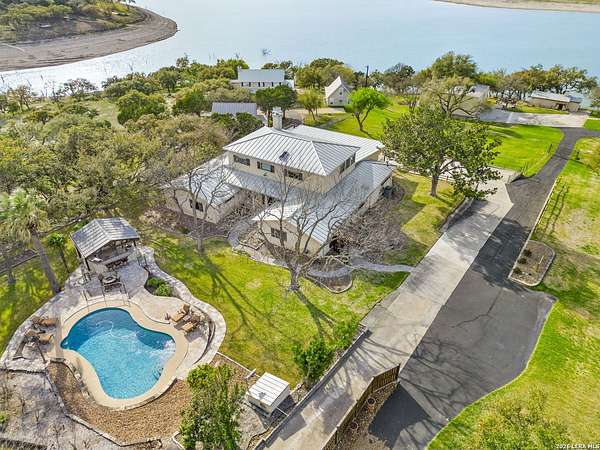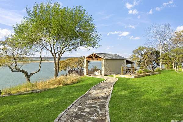Welcome to your private oasis on the stunning shores of Canyon Lake, Texas-a rare multi-million dollar waterfront estate nestled in the heart of the Texas Hill Country between San Antonio and Austin. This exceptional Comal County luxury property boasts an expansive 4.54 acres with a breathtaking 385+/- feet of pristine waterfront, offering unparalleled privacy, seclusion, and the ultimate lakefront lifestyle. Step into this exquisite 5-bedroom, 5.5-bathroom luxury lake home where every detail has been meticulously crafted for comfort, elegance, and entertaining. This two-story waterfront masterpiece in the highly sought-after Comal School District features spacious living areas with soaring ceilings and panoramic lake views that capture the essence of Hill Country lakefront living. The gourmet chef's kitchen is an entertainer's dream, showcasing top-of-the-line appliances, custom cabinetry, and sophisticated design perfect for hosting gatherings large and small. Gorgeous hardwood floors flow throughout the home, while smart home lighting and Sonos sound system integration provide modern convenience and ambiance. Each of the five bedrooms features its own private en-suite bathroom, ensuring comfort and privacy for family and guests alike. The opulent master suite encompasses the entire second story, creating a luxurious private retreat complete with a spa-like ensuite bathroom featuring his and hers closets, a flexible bonus space, and a private balcony overlooking the serene waters of Canyon Lake. Additional amenities include a dedicated billiard room and countless custom touches that make this Central Texas waterfront property truly exceptional for year-round Canyon Lake living. GUEST HOUSE | 660 SQ FT LAKEFRONT CASITA-The charming guest house provides a cozy retreat for extended family or visitors, featuring one bedroom and one full bathroom. This waterfront casita includes a stunning glass shower and a claw-foot tub positioned to overlook the lake, ensuring privacy and comfort while maintaining the luxury aesthetic of the main estate. Outdoor living takes center stage at this Hill Country lake estate. Dive into the luxurious pool with sweeping lake views, perfect for enjoying sunny Texas days and warm evenings with loved ones. The oversized outdoor kitchen is ideal for al fresco dining and lakeside entertaining, while the expansive patio provides ample space for lounging and celebrations throughout the year. ENTERTAINMENT BARN | 2,000 SQ FT EVENT VENUE- Prepare to be amazed by the property's crown jewel-a 2,000 square-foot barn thoughtfully converted into a full dance hall and bar, making this the most unique entertainment venue on Canyon Lake. Equipped with a professional stage, sound equipment, and dazzling lighting, this one-of-a-kind space is perfect for hosting unforgettable weddings, corporate retreats, family reunions, and celebrations. The barn also features a living space and bedroom upstairs, adding versatility to this already extraordinary Texas lake property. Waterfront properties of this caliber rarely come on the market in Comal County. This estate-sized lakefront home offers a combination of large acreage, extensive water frontage, multiple living spaces, and entertainment amenities that simply cannot be replicated. Located between the vibrant cities of Austin and San Antonio, this private waterfront estate provides the perfect balance of seclusion and accessibility to urban conveniences, world-class dining, and cultural attractions. Sold turn-key with only a few exclusions from the sellers, this is your once-in-a-lifetime opportunity to own a piece of paradise on Canyon Lake, Texas. Whether you're seeking a luxury family compound, an executive retreat, a vacation rental investment, or an entertainer's dream home, this multi-generational lake estate delivers beyond expectation.