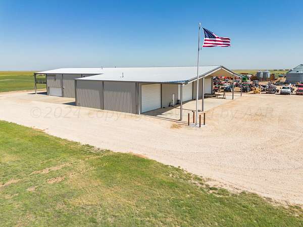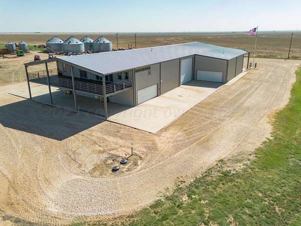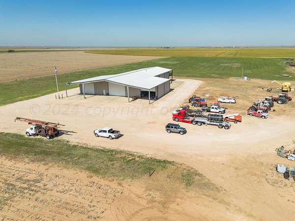 Established in 1928, Vincent Farm is a remarkable +/-3,812 acre farm situated west of Canyon & Amarillo. This property offers a unique & great blend of development, farming and investment opportunities. Totaling 11 miles of road frontage throughout the farm, there are few chances to make a purchase like this. Improvements, include: 23 existing wells - 21 of which are interconnected wells that cover the +/-1,685 acres under pivot, 7 sprinklers, a 2016 shop/barndominium totaling over 20,000 gross sq ft (1,590 sq ft living), 2 quonset barns, +/-105,000 bushel grain storage (5 - 21,000 bushel storage bins), 10 miles of 5 strand barbwire fence, 13 miles of hot wire fence, fiber optic lines, natural gas lines, 4 - 10,000 gallon storage tanks and more. All non-realty items will be excluded from the sale of the property. For additional clarification, all rolling stock, portable corrals, cattle equipment, Batco conveyors (2), 6 shipping containers, fuel tanks & fuel trailers, feed bunks & chutes will not convey. 50% of owned mineral estate will transfer to the buyer, along with all wind and solar rights.