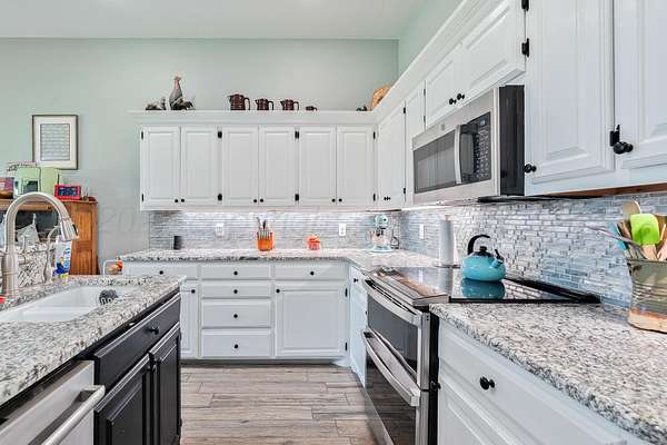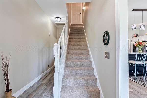 Bring your horses to this great 4-bedroom, 3 bath property on approximately 4.88 acres just outside of Canyon. This property includes a 30.5 x 30.5 ft shop, a 3-stall barn-with tack room, a fenced poultry yard, and a fenced vegetable garden. The kitchen has been updated with granite countertops, lighting and appliances including a double oven, range and microwave. This home has new carpet upstairs, tile downstairs and paint throughout. There are remote shades throughout and a storm shelter in the garage. Other updates per seller include new windows (2025), both air conditioners in the last 10 years, all plumbing downstairs, and will be getting a new Class 4 roof.