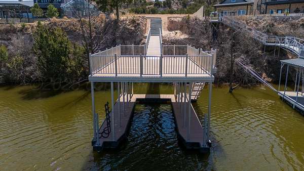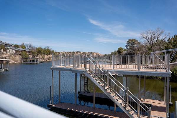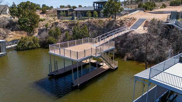 Rare chance to own a lakefront lot on the south end of prestigious Lake Tanglewood. This 1-acre property offers a prime location with recent upgrades including curved cement retaining walls and cement steps leading to a stainless steel boat dock with TREX double decking. Some site preparation has already been completed, so it's primed and ready for you to build your dream home. Enjoy added privacy from your neighbors with a 300-foot long wall on the west side, creating a peaceful and secluded atmosphere with a STUNNING VIEW of the lake!! The sellers will also include the house plans they had drafted for the property. Entry through Tanglewood or The Canyons gates.