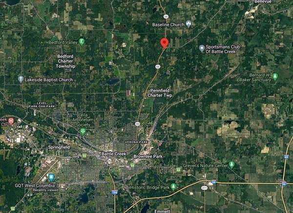 Live in Pennfield Township next to a bison ranch. Only 10 minutes from downtown Battle Creek and 5 minutes to Pennfield Schools. 8 minutes to Bellevue schools if you'd prefer a different district. Perk test is in progress. Build your dream home and have great hunting all in one. The property and adjoining property create a long valley home to deer, ducks and turkey. An 8-point buck was shot late fall 23'. The Wanadoga creek flows through the property, providing beauty and diversity, plus swampy areas the big bucks love. Land includes open pasture (2 acres), water/wetland (19 acres), woods and mature trees (17 acres). Lots of options and potential!