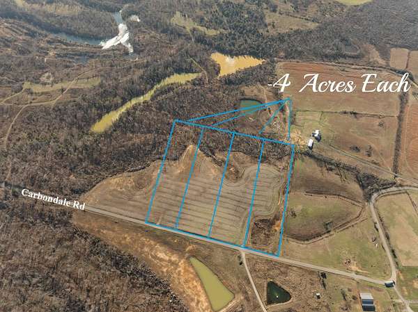 Est $599/moFour Building Lots on Carbondale Rd now available. Each lot 4 acres; utilities available at the road. Asking $80,000 each