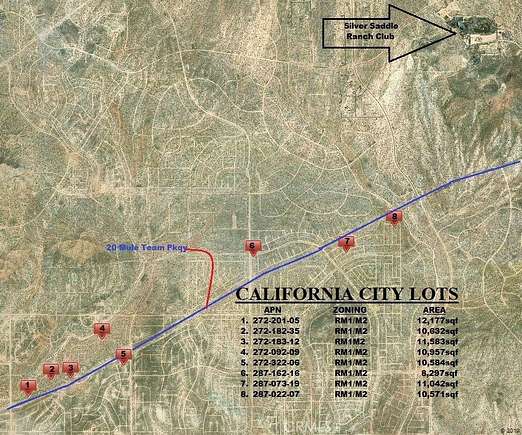 Build Your Dream Home in the growing city of California City. This vacant land is zoned for Multi family residential development. Located in the subdivision developed by Silver Saddle Ranch & Club. Located in a secluded residential neighborhood. Local Town Center, Restaurant, Donuts Shop, Laundry Mat, and a Convenience Store are located few miles away. About 15-20 minutes away from the 14 Fwy. Buyer and Buyers Agent must verify and confirm availability of utilities and zoning information with proper agencies. Perfect for buy and hold investor. Other parcels are AVAILABLE FOR SALE too. Check the pictures for more list and location of other land for sale. SELLER FINANCING IS OK.