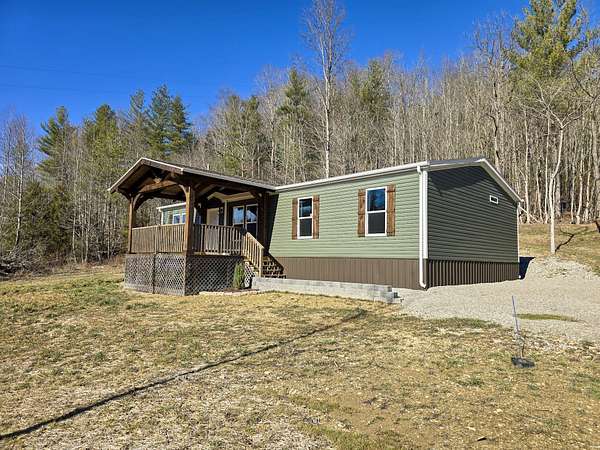 Great opportunity to purchase a brand new double-wide situated on 10.35 +/- unrestricted acres. This beautiful home has never been lived in. Inside, you'll find a spacious 1,404+/- sq/ft layout, featuring 3 bedrooms and 2 full bathrooms. The layout includes an open kitchen and living area, creating an open and inviting atmosphere. There's also a flex room/den with an electric fireplace that adds a cozy touch. Outside, you'll find new decks on both the front and back of the home. The front deck features a beautiful timber frame covering, giving it a warm, rustic touch that makes it as functional as it is good-looking. A handy storage shed provides additional space for your tools and outdoor equipment. The majority of the property is wooded with smaller streams meandering throughout the acreage, creating a peaceful and private setting. Wildlife signs are present throughout, making this an excellent hunting property. Enjoy the privacy of a secluded, wooded setting this property has to offer. Call or text for more details or to schedule a showing!