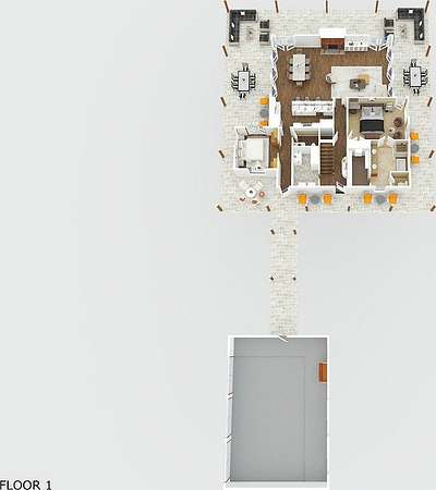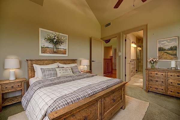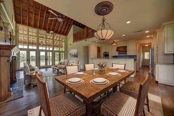 The main residence boasts a seamless blend of rustic charm and modern comforts. This welcoming home features a gourmet kitchen equipped with top-of-the-line appliances, granite countertops, and a center island perfect for both casual dining and entertainment. Adjacent to the kitchen is an inviting dining area with panoramic views of the property, creating a perfect ambiance for gatherings.