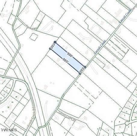 From Hwy 36, at Food City, turn (west) onto Carroll Creek Road. Follow Carroll Creek and turn right (still on Carroll Creek Road) over I-26 and travel about 3/4 mile. Property on Right between 2029 and 2067. Their driveways are the lot lines to this property.