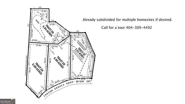 Exceptional 20-Acre Property in Watkinsville With Two Homes, a 1-acre pond and Remarkable Potential! Discover an extraordinary opportunity to own 20 acres in Watkinsville-a property rich in character, history, and possibilities. Once home to the Historic Happy Valley Pottery, this land offers a serene and private setting surrounded by hundreds of acres of uninterrupted woodland. Boasting 871 feet of paved road frontage, the property holds tremendous potential for subdivision, making it ideal for a family compound, creative retreat, investment project, or multi-generational estate. A recorded survey already divides the land into 5-acre tracts, giving buyers the flexibility to purchase the entire 20 acres or select individual parcels. Whether you're looking to build multiple homes, preserve the land as a single estate, or create income-producing opportunities, the groundwork has already been laid. Each of the 5 acre raw land parcels have already been soil tested and are suitable for septic. The property has been recently surveyed with property corners set and lines flagged for easy navigation. The property includes two existing homes, each full of charm and ready for a thoughtful renovation. The main home, a 1920s farmhouse expanded over the years, offers approximately 2,128 sq. ft. of living space. It features 3-4 bedrooms, 2 bathrooms, original pine flooring and cabinetry in portions of the home, and additional spaces finished with carpet or vinyl. A cozy fireplace, screened front and back porches, and a newer metal roof add to its Southern farmhouse appeal, making it a beautiful canvas for restoration. The second residence, built in 1996, is a welcoming 1,050-sq.-ft. cottage with 2 bedrooms and 1 bathroom, complete with an 800-sq.-ft. unfinished basement. The interior showcases handmade kitchen cabinetry, soaring pine ceilings, and wood siding that give the home a warm, rustic feel. Both homes are being sold as-is, offering the opportunity to live on-site while renovating, or to update one home while building on one of the additional tracts. Despite its peaceful seclusion, this property sits in a prime location-just 9 miles from downtown Watkinsville, a short drive to Madison, and only 30 minutes from Athens. You'll enjoy the perfect combination of country quiet and easy access to shopping, dining, and Oconee County's award-winning schools. Opportunities like this-20 acres with history, multiple homes, subdivision potential, frontage, and unmatched privacy-rarely come available in Oconee County, especially at this price. Whether you're an investor, homesteader, or visionary builder, this property is ready to become something truly exceptional.