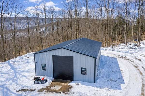 Unique opportunity to own 57.56 acres of scenic land on quiet Carson Road in Virgil, NY-just 1.2 miles from Greek Peak Ski Resort and Hope Lake Lodge. This expansive parcel is mostly wooded and offers a mix of rolling hills, steep slopes, and level areas, creating both privacy and natural character. A standout feature of the property is the impressive 60' x 36' garage/workshop, thoughtfully designed for serious utility and future flexibility. The building is fully equipped with electric, heat, and water, and features a 12-foot overhead door with 14-foot clear-span ceilings-ideal for storing heavy equipment, a camper, RV, or boat. Additional highlights of this insulated building include concrete flooring, a half bath, and a partially finished room with potential for future living space or a home office. Build your dream home on this hilltop setting and enjoy a major head start-the heavy lifting has already been done. Septic, well, driveway, and electric are already in place, saving significant time and expense. The property also offers excellent hunting and outdoor recreation, all set along a peaceful country road surrounded by similar large parcels and high-quality homes. Property also includes a small storage shed. A unique combination of acreage, infrastructure, and proximity to year-round recreation-this is a property that truly offers both opportunity and lifestyle.