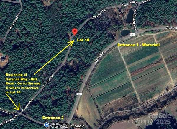 Own a 4.24-acre private parcel in the foothills of beautiful NC! For outdoor enthusiasts or anyone who loves green space, the Bluffs are calling your name. Adjacent to Pisgah National Forest, kayaking, fishing, waterfalls, and off-road adventures await you. This ready-made community features paved roads and underground utilities, including power and high-speed internet, all maintained by the HOA for just $400 per year. A hidden gem lies 3.5 miles from home: the Wilson Creek National Wild and Scenic River. Wilson Creek, which originates from the slopes of Grandfather Mountain, travels for 20 miles and flows through a deep 200-foot gorge to meet the Johns River. Everyday conveniences are only 10 to 12 miles away. Please note the CARSONS WAY sign is missing at the start of the road, SEE the picture I provided in the MLS as the STREET VIEW & Directions Image. LOCK CODE is required.