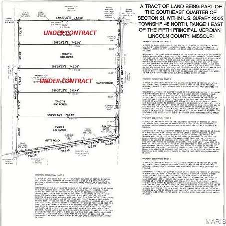 Discover the perfect site for your custom home in this exclusive new 5-lot development in Southern Lincoln County with no HOA. Perfectly situated at the corner of Mette Rd and Carter Rd in Moscow Mills, just a few minutes from the Hwy 40/61 "U" exit for an effortless commute. Choose from (4) 3+/- acre tracts offered at $150,000 or secure the premier 3.5+/- acre corner lot for $175,000. Enjoy a peaceful, rural setting with modern convenience. Each lot will have its own driveway off of Carter Rd. Corner lot #5 could have a driveway off of Mette Rd or Carter Rd. Building Requirements: No modular homes allowed. Minimum 1,400 sq. ft. for ranch/single-level and 2,200 sq. ft. for 2-story builds. Utilities: Cuivre River Electric is available; Gateway Fiber is available for internet, private well and septic required. This listing price reflects lot #2, 3+/- acre lot. Bring your own builder and start planning your dream estate today!