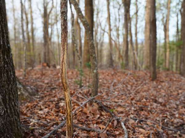 Approximately 25 acres were recently timbered and replanted in loblolly pine (2026), creating ideal bedding and forage conditions for deer and turkey in the near term while establishing a future timber investment. The remaining acreage features a strong mix of mature hardwoods, including poplar, red oak, white oak, beech, and cherry, standing tall along the creeks and throughout the wooded ridges. This diversity supports excellent habitat and adds seasonal character across the property.
