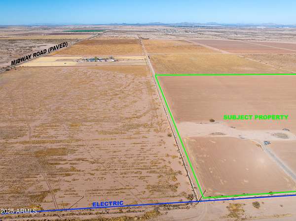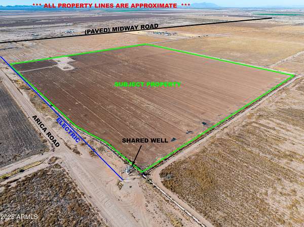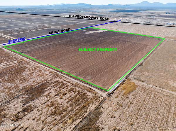 THIS IS A VERY CLEAN, FLAT, PREVIOUSLY FARMED PARCEL OF 40.33 ACRES JUST OFF PAVED MIDWAY ROAD, LOCATED 1 MILE SOUTH OF INTERSTATE 8. PROPERTY HAS IRRIGATION WATER RIGHTS, AND A 1/16TH INTEREST IN A MASSIVE IRRIGATION WELL. ELECTRICITY IS AT PROPERTY LINE. PROPERTY IS CURRENTLY LEASED TO A FARMER UNTIL END OF YEAR. LEASE MAY BE CANCELLED IF NEEDED DEPENDING ON CURRENT CROP. ATTESA MOTORSPORTS COMPLEX UNDERWAY JUST 2 MILES TO THE EAST. LUCID MOTORS AND TRACTOR SUPPLY LOCATED JUST 10 MILES FROM PROPERTY. LASER LEVELED IRRIGATED FARMLAND IS THE MOST DESIRABLE LAND THERE IS. THIS PROPERTY HAS ELECTRIC AT PROPERTY LINE AND SHARED INTEREST IN MASSIVE WELL. BETTER HURRY!