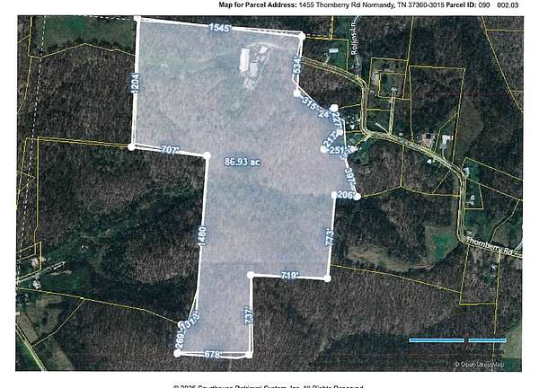 This exceptional property offers the perfect blend of natural beauty, privacy, and convenience--adjoining the famed George Dickel Distillery and overlooking the scenic Normandy lake. Ideally situated near Tullahoma, Normandy, Wartrace, Shelbyville, and Normandy Lake, this is a rare opportunity to own a piece of Tennessee countryside with unique character and potential. Dual access from 1455 Thornberry Road and Cascade Hollow Road. Branch running through the property. Several building sites. City water available. All buildings are being sold As-Is. Whether you're looking to establish a private retreat, hunting grounds, or investment property with unmatched character and history, this property offers outstanding possibilities. Buildings include: approx. 30'x80' dairy barn with 2 bedroom apartment, approx. 200'x76' open shed, approx. 60'x40 open shed, 120'x60' loft barn, 38'x28' utility building. Property is located in both Coffee & Bedford Counties. Coffee County Schools are listed and Bedford County Schools are Cascade Elementary, Middle & High School. Survey is being done. **Property is occupied and to be shown by appointment only. Property is located next to 330 Cascade Hollow Rd.