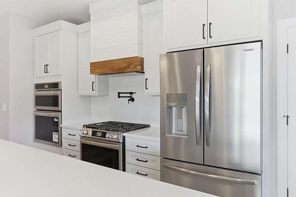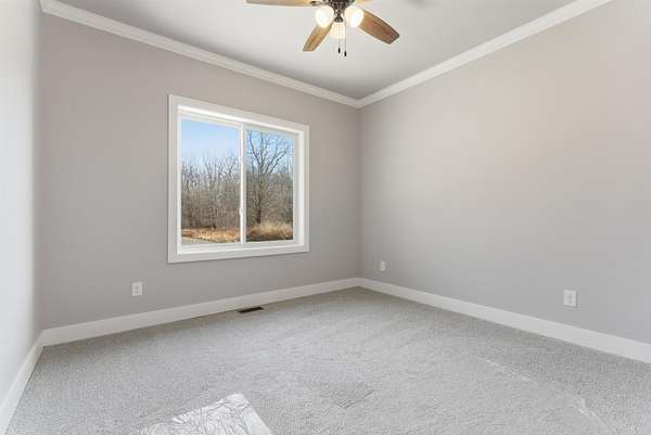 Set on an exclusive 2.5-acre parcel, this luxury residence showcases exceptional craftsmanship, thoughtful design, and premium upgrades throughout. The finished 3-car garage is fully painted, trimmed, featuring beautiful insulated garage doors and openers. The gourmet kitchen is a standout with KraftMaid solid wood shaker cabinetry, quartz countertops with full-height backsplash, a custom shiplap vent hood, pot filler, and Frigidaire Gallery appliances--including dual ovens for elevated entertaining. Refined details continue with a butler's pantry complete with wine cooler, full brick exterior, Andersen windows, and an upgraded 96% efficiency HVAC system. Bedrooms are enhanced with crown molding and ceiling fans, while the upgraded media package offers a 75-inch TV paired with stunning custom built-ins. The well-appointed laundry room features quartz countertops, and a Maytag front-load washer and dryer. A whole-home water softener completes this meticulously curated property. The home also offers natural gas...saving you money and way more convenient instead of propane. Only 1 mile East of Richmond.