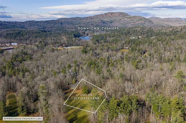 From the Cashiers Crossroads, take Highway 107 South; turn right on White Owl Lane; turn right on Ivy Gate Lane; homesite is at the end of the road on the left.