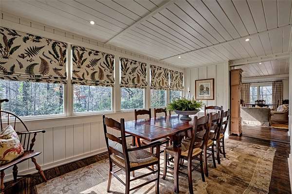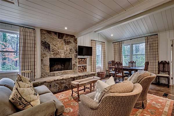 Nestled in the heart of High Hampton, this charming one-level retreat at 23 Chattooga Wood Road offers the perfect blend of comfort, convenience, and mountain elegance. Situated on a peaceful 2.62-acre lot just moments from the Inn and resort amenities, this 3-bedroom, 3-bath home is ideal for full-time living or a relaxing mountain getaway. The thoughtfully designed floor plan features an open-concept kitchen and living area, creating a warm and inviting space for gathering with family and friends. Natural light flows throughout, enhancing the home's easy, livable feel. A bunk room provides flexible accommodations-perfect for children, grandchildren, or guest overflow-while the additional bedrooms offer privacy and comfort. A covered porch extends the living space outdoors, offering the perfect setting to enjoy cool mountain mornings, peaceful afternoons, and evenings surrounded by nature. With effortless single-level living, a carport for convenient access, and the tranquility of a spacious, wooded setting, this home combines privacy with exceptional proximity to golf, dining, hiking, and the timeless charm of High Hampton. This is a rare opportunity to own a serene mountain home just steps from one of Cashiers' most beloved communities.