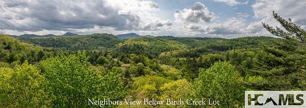 From Cashiers take 107 N for 1.8 miles to a right into High Springs (before Blue Ridge) continue on stone Cliffs Lane, then left onto Birch Creek Trail follow to end of cul-de-sac lot is on the right.