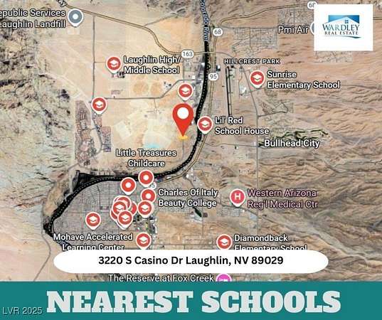 From Laughlin Hwy (163) & Thomas Edison Drive, S on Thomas Edison Dr, R on S Casino Dr, approximately 0.7 miles to the middle of the property, on Right.