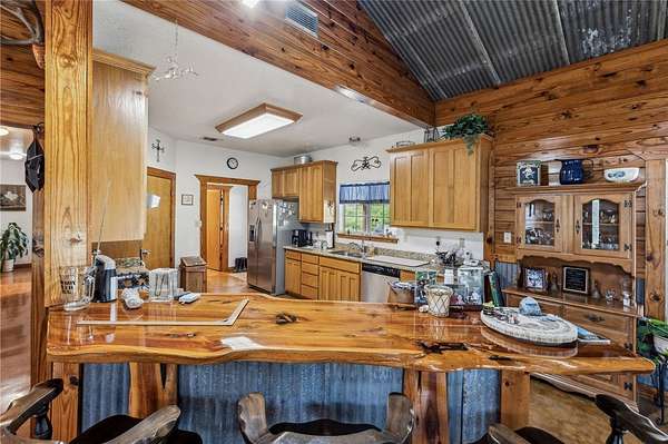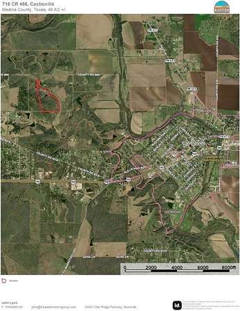 *$100,000 Price Reduction on 8.25.25 * 30 miles west of the Alamo and 2 miles northwest of Castroville lies this 49 ac Medina County gem. The property is private, secluded, and easily accessible via lightly traveled CR466. Feel the stress leave your body & embrace a calming sensation as you depart the blacktop road and meander through grassy meadows & century old oaks via the limestone ranch road. The residence is 1,831 square foot, 3BR, 2 bath metal sided home built in 2006. This open concept home features stained concrete floors, a wood burning fireplace with rock hearth, covered porches, and covered carport. Also is a 40' x 60' enclosed barn/shop & 60' x 30' lean-to. Water for the home & shop is supplied by a domestic Edwards water well with submersible pump. The entire eastern boundary consists of +/- 3,250' of frontage along the Bexar Medina Atascosa Canal. This area is densely wooded, providing an ideal natural buffer between the property and neighboring tracts. The immediate area includes larger, low fenced acreage with native wildlife including Whitetail deer, hog, & dove. Centrally located within the property is a stock pond, approx 1/3 acre when full. The highlight of the ranch is a 15 acre hilltop covered with Live Oaks, which would make an incredible location for a new home. From this vantage point, you can enjoy expansive views in every direction. This hilltop is truly unique and may very well be one of the best available homesites currently on the market in Medina County. The feeling of seclusion is rarely experienced so close to town. The natural setting, combined with magnificent hilltop homesites & close proximity to urban amenities, makes this property a rare find. The property currently holds a Wildlife Management Agricultural tax exemption. Seller to provide existing survey and standard title policy. The only known easement is a South Texas Electric Coop Overhead Electrical Easement located at the entrance, running along county road frontage.
