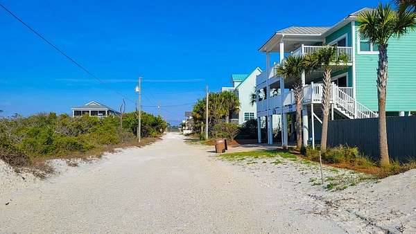 From Port St. Joe, take SR 30-A East. Right on Cape San Blas Rd. Catamaran Drive is approx 6 miles down on the left, 1/10 of a mile past the Cape Trading Post. Turn left. Lot is the 3rd lot down, ~300 feet from road on right. See sign.