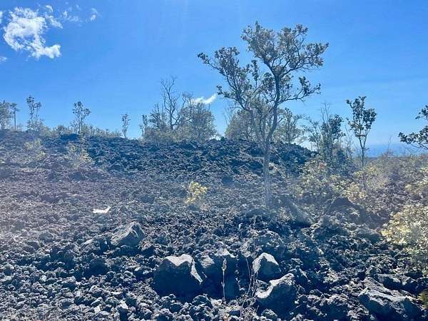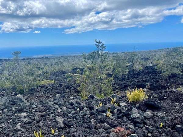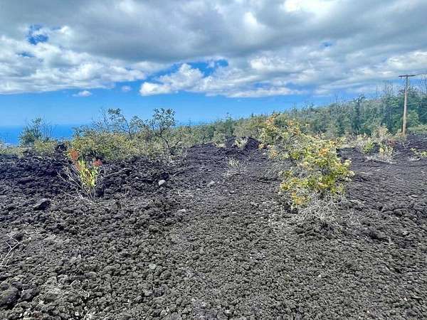 Exceptional ocean views highlight this desirable 1-acre wide lot in Hawaiian Ocean View Estates. This beautiful parcel features a mix of native vegetation and trees, offering multiple ideal building sites for your Hawaiian dream home. The gentle topography lends itself to easy clearing for a driveway and house pad, making development straightforward and cost-effective. Enjoy the convenience of overhead power available on the street, allowing you to build with modern utilities without relying solely on solar or a generator. Situated at an elevation known for cool, comfortable evenings, the climate is ideal for outdoor living and growing a variety of fruits and vegetables. Hawaiian Ocean View Estates is a thriving and growing community offering everyday conveniences including grocery stores, gas stations, restaurants, a post office, hardware store, and local businesses. Residents enjoy a strong sense of community along with expansive open space and dark night skies. Nearby activities abound, with Hawai'i Volcanoes National Park, hiking, biking, and stargazing just a short drive away. Beautiful South Point, black sand beaches, fishing, and coastal adventures are easily accessible, while Kailua-Kona and Hilo are both within reach for shopping, dining, medical facilities, and airports. A recent survey has been completed and the property is staked, providing added clarity and confidence as you plan your build. Don't miss this opportunity to own your own slice of the Big Island-come experience the views, climate, and lifestyle that make Ocean View such a special place to call home.