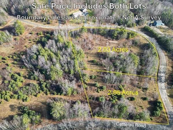 Here is a rare opportunity to own two contiguous properties in a spectacular location! Sale price includes two lots, consisting of a 2-acre parcel of land on Catterall Road along with an additional 2-acre lot on Buck Ridge Road. Owner will not sell separately. Each of these lots feature underground utilities on paved, town-maintained roads in a highly desirable part of Lisbon, NH, just 4 miles from I-93, with popular shopping, dining, and retail options in the nearby town of Littleton, NH. The lot on Buck Ridge Road features a state-approved, 3-bedroom Advanced-Enviro septic system which is already in place! The sellers intended to build a home in 2020, but plans changed due to Covid and the system has never been used. Both lots have been perc tested. Here is your opportunity to escape the hustle and bustle of your busy life and experience some genuine tranquility, while enjoying all that the White Mtns have to offer! This listing is also being offered for sale as MLS#5070873 and MLS#5070877.