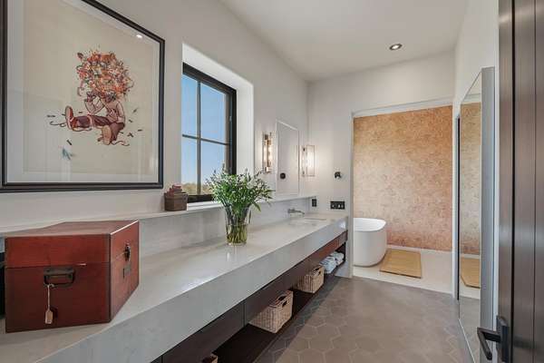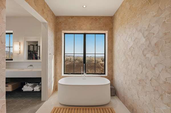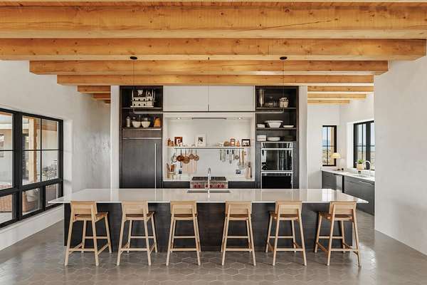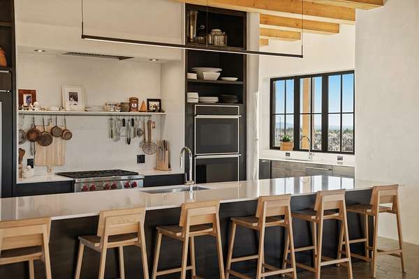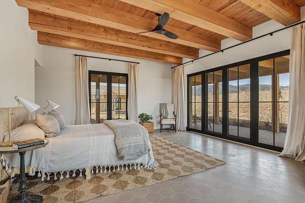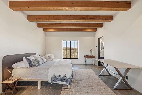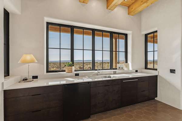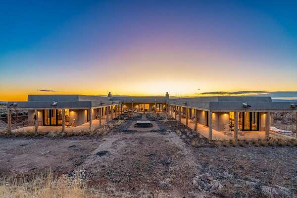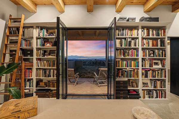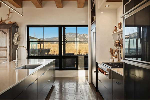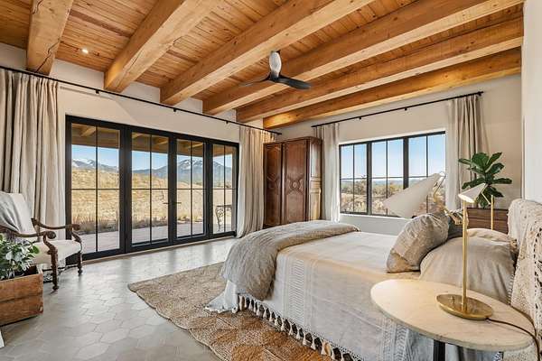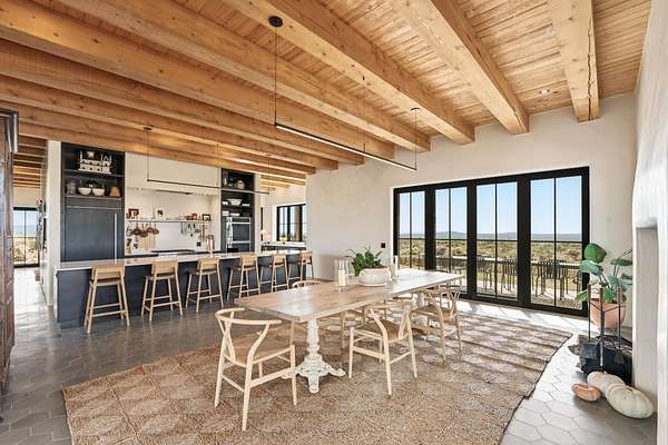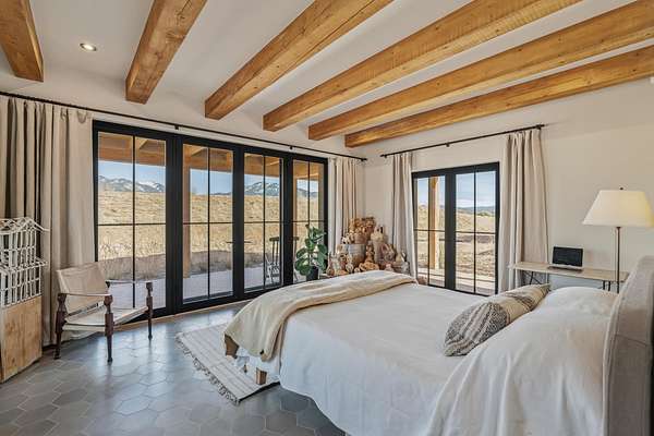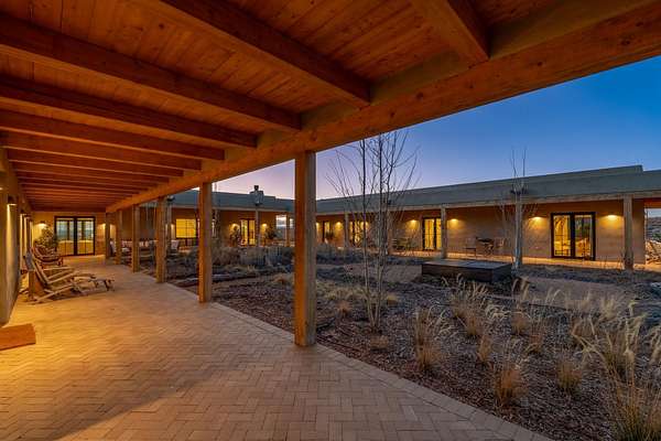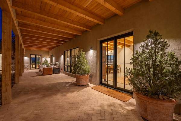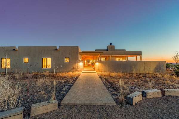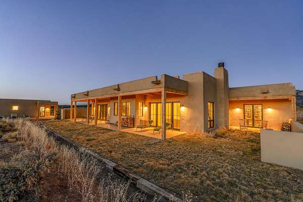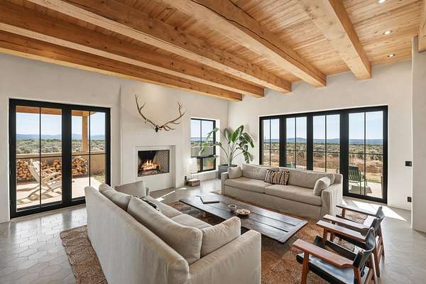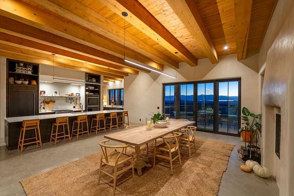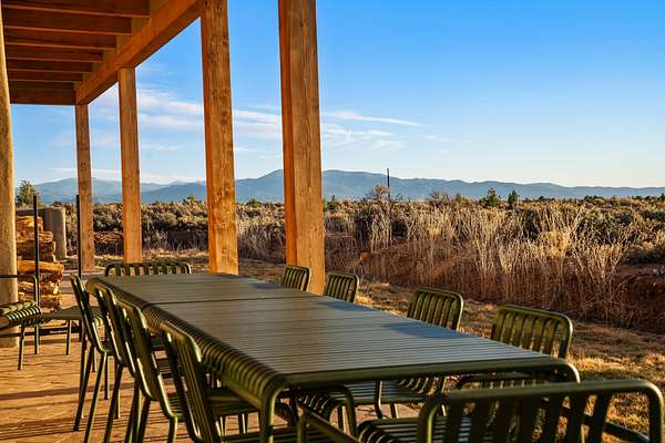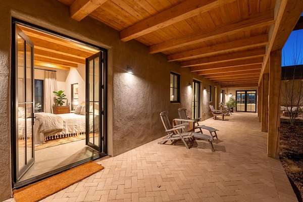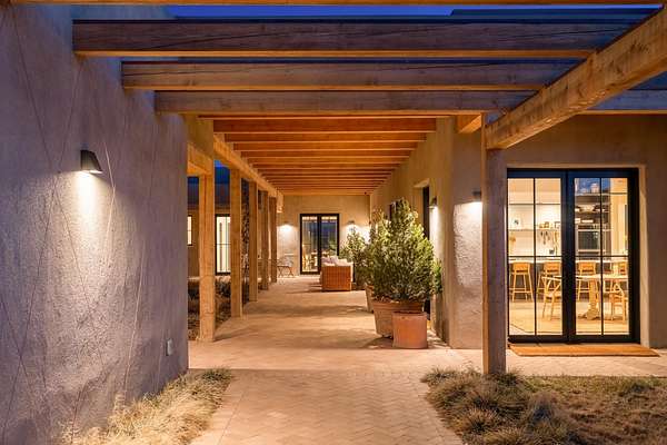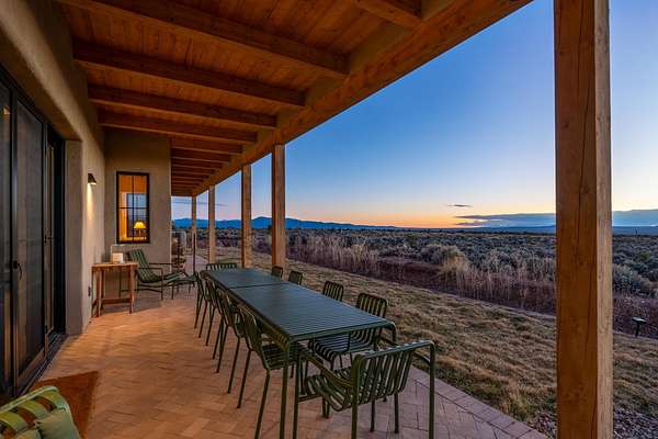 Completed in August 2024, this architecturally refined, modern-hacienda-style residence on Cavalry Camp Road offers a rare blend of contemporary design, thoughtful craftsmanship, and true indoor-outdoor living. Designed by Jed Magee of Magee Design, LLC and built by Aaron Magee of Magee Build, the property embodies exceptional attention to detail, materials, and long-term performance. The property is located in the highly desirable area of Arroyo Seco, with Taos Ski Valley just 20 minutes away, offering access to world-class skiing and year-round mountain recreation. Shopping, dining, and the Historic Taos Plaza are also conveniently close by, providing easy access to the cultural and culinary heart of Taos. The residence sits on 10 acres and borders Pueblo land, which provides additional privacy and long-term protection of the surrounding landscape and stunning views. The residence spans 4,492 square feet across a main residence and a fully independent guest residence, providing flexibility for hosting, multi-generational living, or creative use. The home's purposeful siting frames dramatic views of the Sangre de Cristo Mountains to its east and reveals an unobstructed 180 degrees sunset panorama to its west. The main residence (3,108 sq ft) features 2 bedrooms and 2 baths, while the guest residence (1,384 sq ft) offers 3 bedrooms and 2.5 baths, for a total of 5 bedrooms and 4.5 bathrooms (including one bedroom currently used as a library). Each part of the extended home is designed to open to the substantial 2,700+ sq ft courtyard of lavender, English roses, and native plants. Both the main house and the guest wing are fully self-sufficient with separate radiant heating systems, dedicated on-demand water heaters, laundry facilities, and mechanical rooms, ensuring comfort, efficiency, and privacy. Each room is equipped with individual smart thermostats, and a centralized smart home hub allows seamless control of lighting and heating throughout the property. Indoor spaces open gracefully to expansive exterior living areas, including a substantial 2,400 square feet of covered portals framing the central courtyard and multiple patios positioned to capture light, extraordinary views, and total privacy-hallmarks of the home's modern hacienda design. A detached two-car garage completes the compound. Constructed with 6-inch ICF walls for superior insulation and durability, the residence features TPO roofing with copper-lined cedar canales, cottonwood-colored stucco, and Sierra Pacific clad windows and doors. Interior finishes include pigmented finish plaster walls, quartz countertops throughout, two fireplaces, and Zia handmade encaustic cement tile flooring. The primary and guest baths are accented with Zia handmade cotto tile, reinforcing the home's refined Southwestern character. The kitchen is outfitted with a premium appliance suite, including Wolf, Sub-Zero, Monogram, and Bosch, complemented by multiple freezer units for convenience and storage. This newly completed residence offers a compelling combination of architectural integrity, craftsmanship, privacy, protected views, and lifestyle-ideal for those seeking a private courtyard compound in one of Arroyo Seco's most desirable settings with convenient access to Taos Ski Valley and the very best of Taos. MATTERPORT VIDEO LINK:
