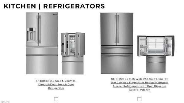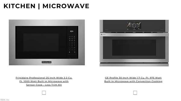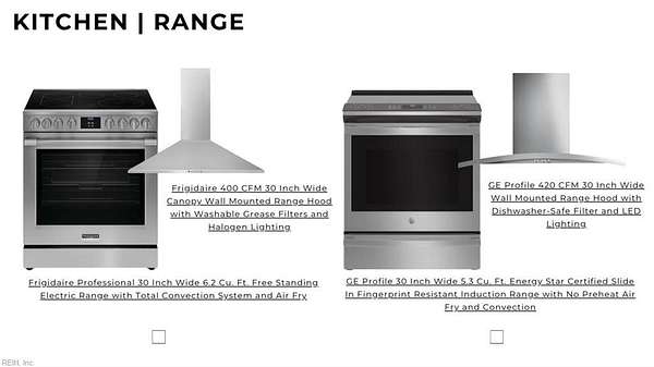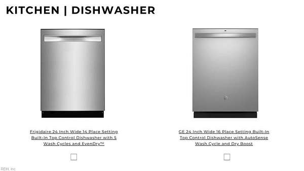 - Dishwasher, Dryer, Electric Range, Microwave, Range, Refrigerator, Washer