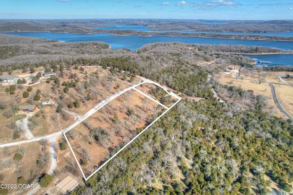 Est $515/moOver 1 acre building site in a Luxurious Rural hilltop Neighborhood with three big Table Rock Lake views. Upscale development provides road maintenance as well as community water and sewer. Lot 2. Pre-construction water/sewer dues are $425/lot/year. Road/common area dues $250/lot/year. Neighbor-friendly restrictions maintains attractive surroundings. Underground electric in place.