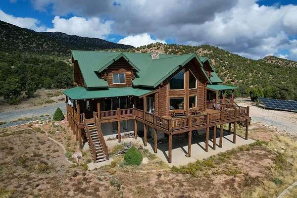 Escape to this fabulous three story cabin secluded in the Wah Wah Mountains in northwest Iron County. This amazing custom lodge is nearly 6,000 square feet and built on 840 tree-covered acres. Completely surrounded by BLM land for outdoor recreation enthusiasts. Spectacular views from everywhere on the property. Clear views of Brianhead, Cedar Mountain, Kolob, and the lights of Cedar City. The 1296 sq. ft. wrap-around deck sports a staircase on each side. You'll love the large family room which features an incredible ceiling-high stone fireplace. Unique ceiling angles and beams add interest to the pine tongue and groove vaulted ceiling. Large kitchen with custom pine cabinetry. Commercial grade stainless steel six-burner gas stove with 24'' grill and double ovens. This home has it's own Solar power and all the modern conveniences but with seclusion and peace and quiet provided by the gorgeous countryside all around this gorgeous retreat! Call agent to get all the details there are too many to share!