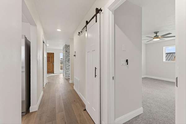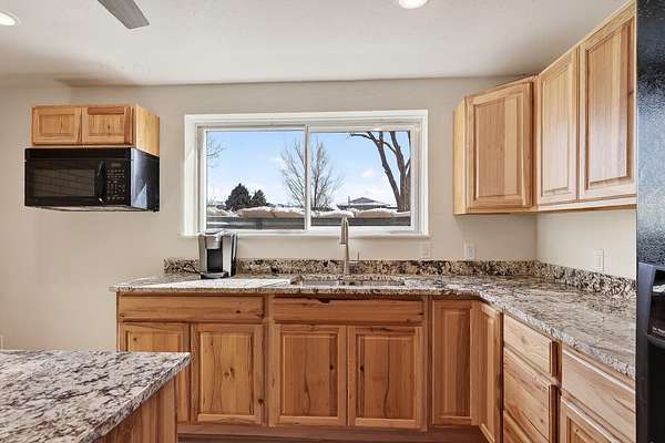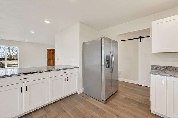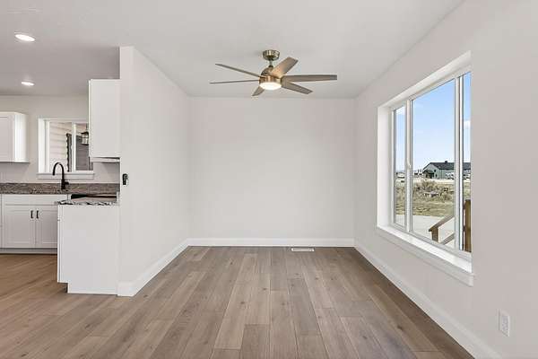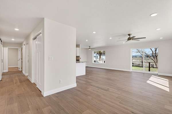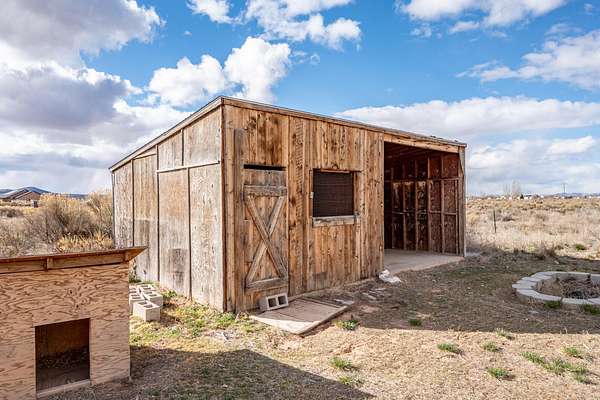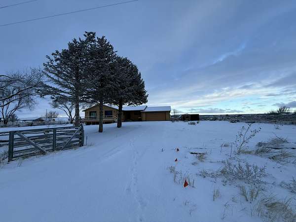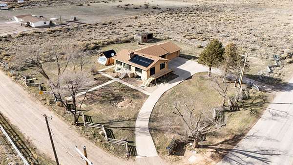 Discover rural living at its best on nearly 5 acre fenced property with animal rights and plenty of space for RV parking. This versatile property is connected to a community well with 3.85 acft of usage per year. This fully renovated home has new paint, flooring, windows, cabinets, appliances, electrical, plumbing, countertops and a beautiful new electric fireplace. Enjoy the versatility of the basement apartment with private entrance. Live comfortably upstairs while generating additional income from the lower-level unit, or enjoy the flexibility of multi-generational living! The expansive lot with mature trees provides ample room for your small farm, hobbies, and toys! It comes complete with a large storage shed and an oversized two-car garage. Home even has paid off solar panels!