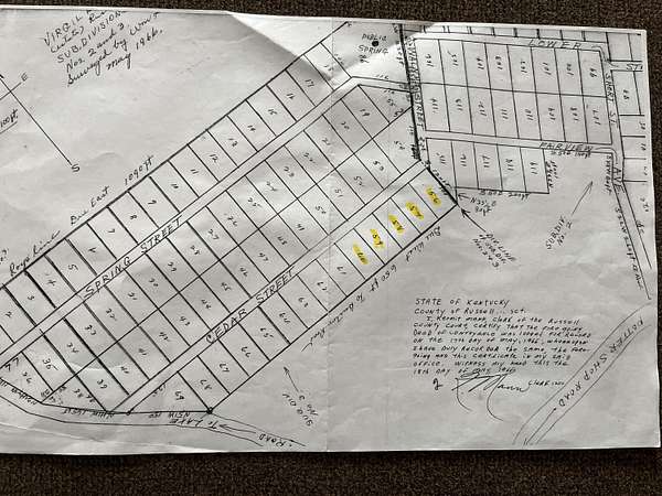 From Somerset: head west on Hwy 80 to Nancy, KY, turn left onto 196. Continue 9.2 miles to Richardson Rd. and turn left. Go 1.1 miles to Pottershop Rd. and turn left. Go 0.9 miles to Burton Subdivision and turn left, go 600 ft to Cedar St. and turn right. The five lots are at the end on the right.