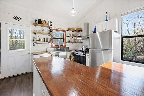 "The Treehouse" Cabin was built in 2021 as a forever home. Approx. 1,000 sq ft, post-and-beam construction, 2 bedrooms / 1 bath, plus 3rd bedroom & bath dried-in. Loft space for sleeping, storage, or recreation. Vaulted ceilings, 22 oversized triple-pane windows. Metal roof with 75-year silicone coating. Move in ready, fully furnished and equipped. 10' x 20' screened porch overlooking active wildlife areas. Also 1,200 sq ft covered area beneath home for parking, entertaining, workshop, or outdoor kitchen. Completely off-grid, self-sustaining, and storm-proven -10kW solar system with lithium-ion battery storage, 12kW whole-house propane generator + portable 8kW generator, Two wells (house + irrigation), Starlink internet (325 Mbps down) + cell booster redundancy! Cleared areas, feed plots, trails, and vehicle access throughout.