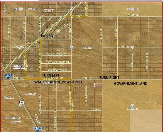Pierce Ferry, Right on Bullhead, Left on 3rd for 1 mile, Right on Cedar, 2nd lot on the Right.