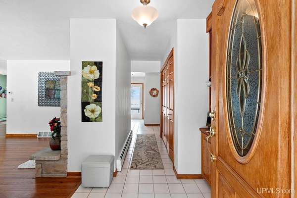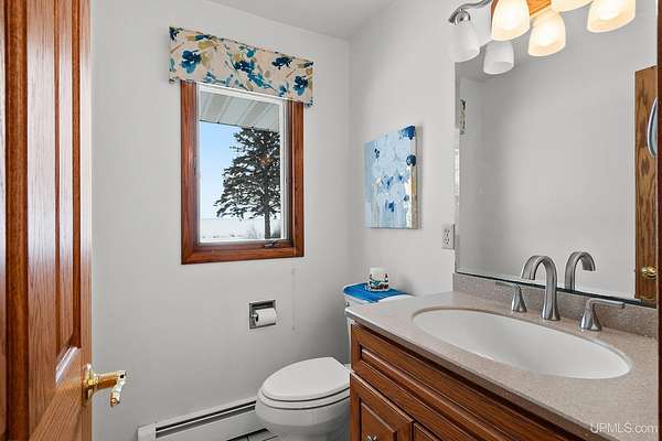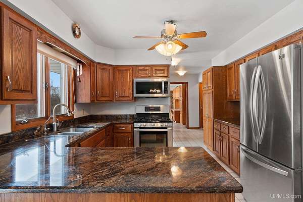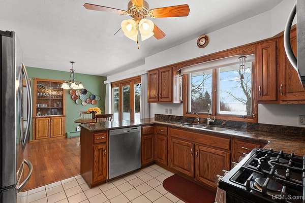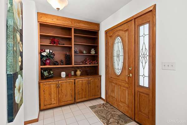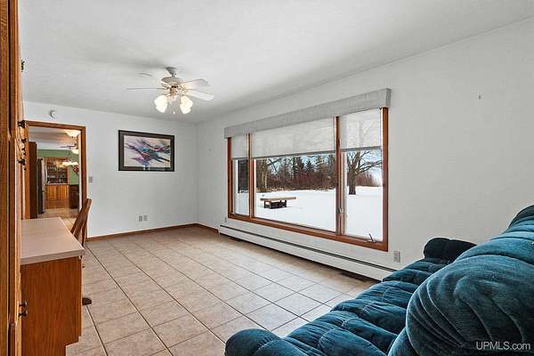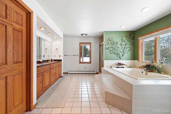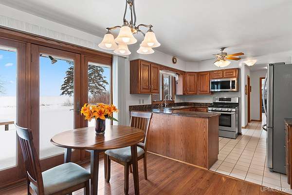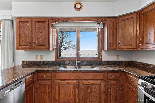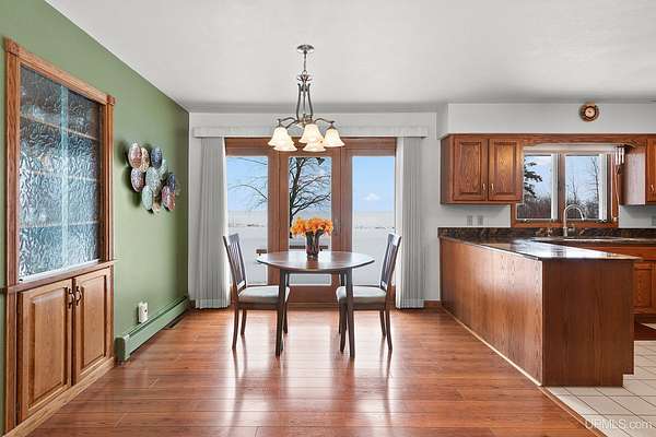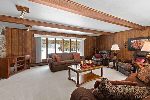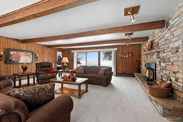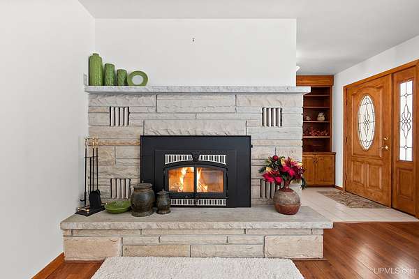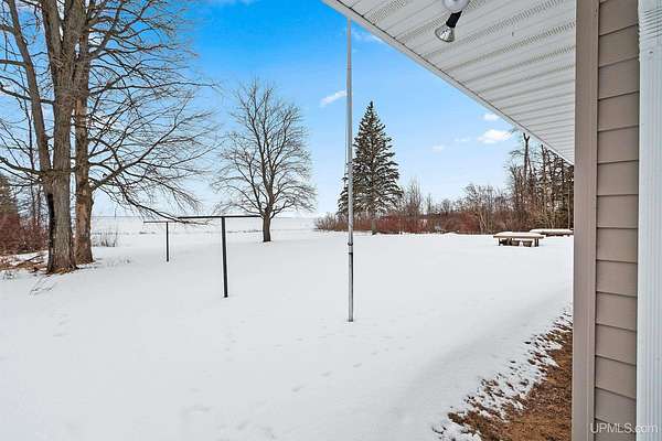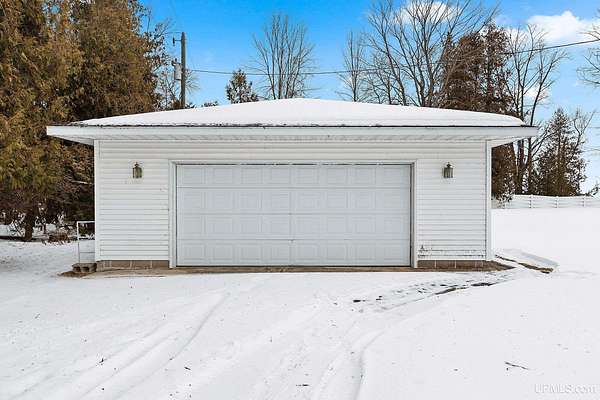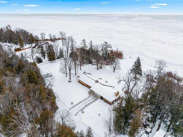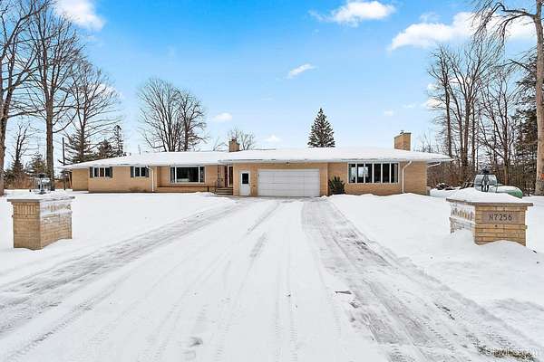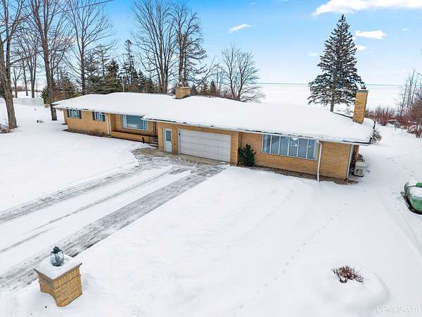 Spacious 2+ bedroom, 2.5 bath ranch offering approx. 2,600 sqft. of living space on just over 3 acres with 290 feet of Green Bay frontage. Set well back from the main road, this professionally maintained property delivers privacy, functionality, and beautiful water views. The home features a large primary suite with a soaking tub, dual vanities, and a walk-in closet. Enjoy both a living room and a separate family room, each with its own fireplace, along with a dedicated library/office. The family room offers flexibility and could be converted into additional bedrooms if desired. Quality kitchen cabinetry with granite countertops. The back deck offers an ideal place to relax while overlooking the bay. With a little work, the vegetated shoreline can be restored to its sandy beach. Additional features include a partial basement with dyke system, mound septic system new in 2023, roof replaced in 2019, Generac backup generator, attached 2-car garage, and an additional detached 2-car garage for extra storage. Conveniently located near Cedar River Marina, campgrounds, and year-round recreation, this waterfront property offers space, privacy, and opportunity. Priced under appraised value!