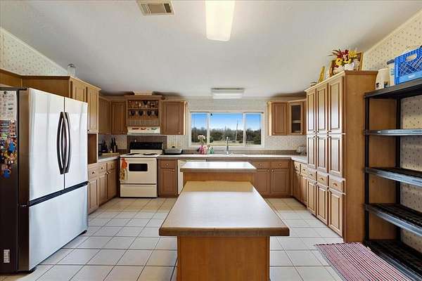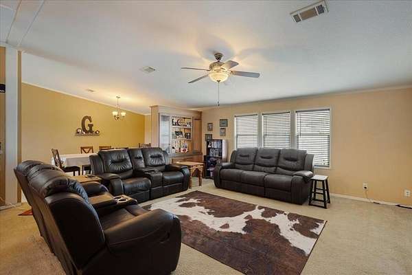The property includes a 3-bedroom, 2-bath Palm Harbor home (2002) with an office and is recognized as real property, offering comfortable full-time living or a solid rental option. Step outside to a standout 20x60x16 workshop (built 2018) with 220-volt electric and water, ideal for tractors, side-by-sides, tools, hobbies, or small business use. A covered RV parking area with water hookup and 50-amp service adds even more versatility for guests or extended family.