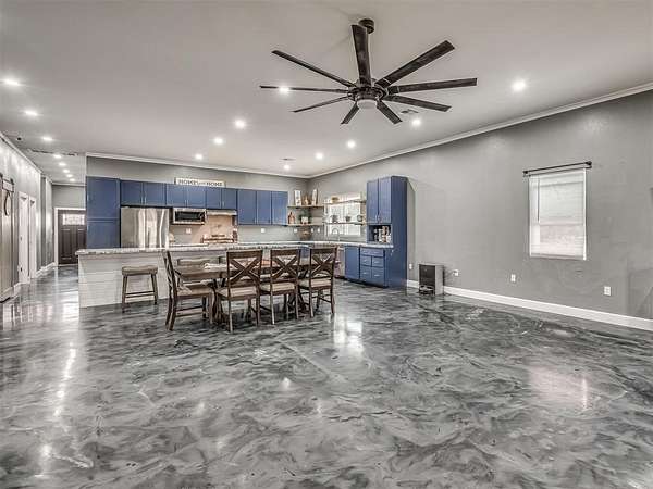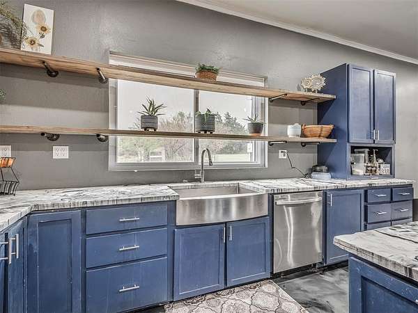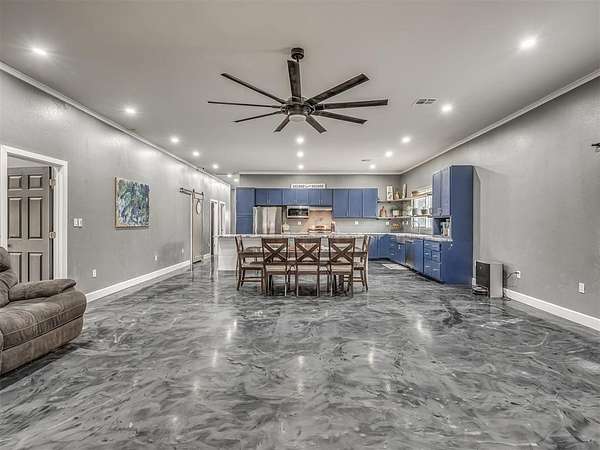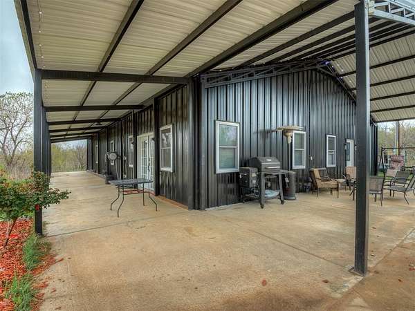 Set on a peaceful 3.5 mol homesite lay quietly just an hour outside OKC and only 30 min from Ft. Sill area. This 3 yr old home offers the freedom of country living with the convenience of being within easy reach of nearby towns and amenities. This home features an open-concept layout designed for modern living, with spacious rooms, abundant natural light and flexible floor plan that adapts easily to a variety of lifestyles. The kitchen serves as the heart of the home, offering generous cabinetry expansive counter space and a seamless flow into the main living area-ideal for gatherings, entertaining or simple everyday living. Throughout the home, durable epoxy-style flooring provides a contemporary aesthetic and easy maintenance, while the primary suite offers a private retreat with a modern spa-inspired bathroom complete with large walk in shower and beautiful stand alone soaker tub. The bedroom offers a private French doors to the expansive covered porch. Perfect for a hot tub, or evening relaxing in a cozy chair listening to silence. Additional bedrooms are well-sized and positioned for comfort, privacy and function. Outside, the acreage creates space to breathe, garden or simply enjoy gorgeous Oklahoma sunsets. Lots of room for hobbies, animals or future customization. With No HOA and plenty of open space this property offers a rare opportunity to personalize a newer home and land to your vision. If you're looking for modern construction, energy efficient, and the flexibility to make a property your own, this home is worth a closer look! Upgraded items include: *50 solar panels located on the large workshop *Large RV & other carport. *Energy efficient windows *Spray foam insulated (attic space 6", exterior walls 4" *Water softener *Water well pump replaced this year *Workshop outfitted with electricity, ac/heat and water (additional living space started. *Fridge stays *large pantry *Pot filler